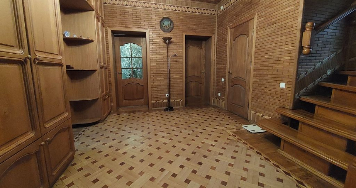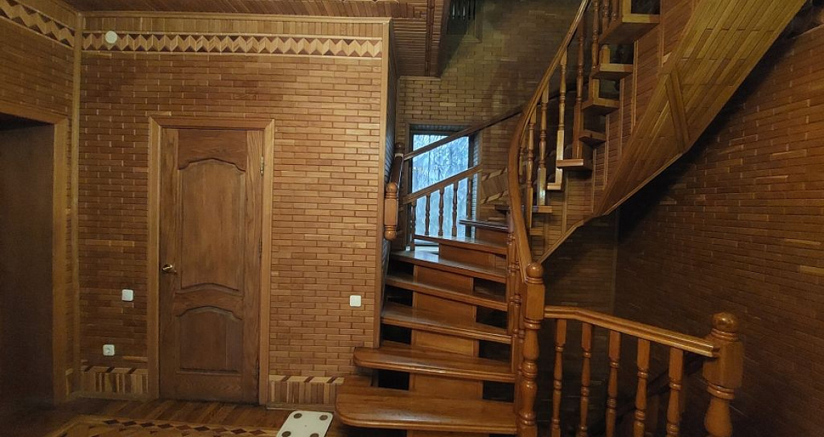В доме применены максимально экологичные материалы: паркетный пол на жилых этажах, деревянные лестницы из массива, стены лестничных пролетов – облагорожены настенным паркетом.